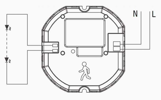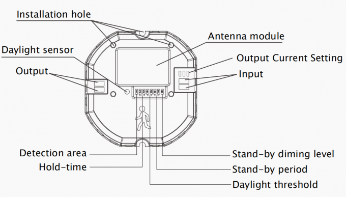 5.Pengaturan default pabrik: area deteksi 100%/waktu tunggu 5 detik/ambang batas cahaya siang hari dinonaktifkan/periode siaga 0 detik/tingkat peredupan siaga 10%.