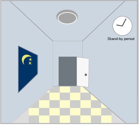 Ambang batas cahaya siang hari diatur ke "Nonaktifkan". Lampu menyala saat mendeteksi gerakan, setelah orang pergi, lampu mati setelah periode siaga. Aplikasi: Redupkan tempat seperti tempat parkir bawah tanah, jalan bawah tanah.