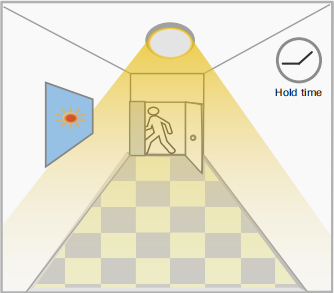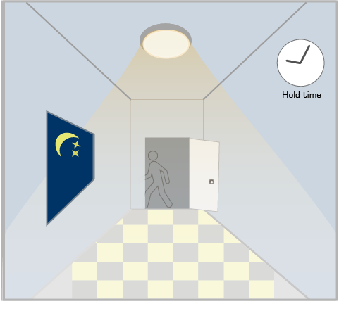 Periode cahaya mempertahankan kecerahan 100% setelah objek yang bergerak meninggalkan area deteksi.